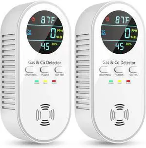 5-in-1 Carbon Monoxide Detectors, Natural Gas Leak Detector, Plug-in & Battery Backup Co HD Digital Display, CO Temp Humidity Sensor, 2-Pcs, White -