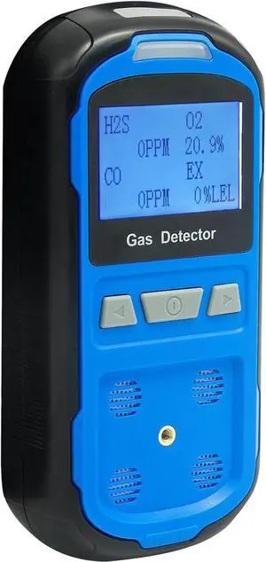Upgraded 4 Gas Monitor Multi Detector, Leak Rechargeable Ex H2s Co O2 with LCD Multiple Indicator (Blue) Blue -