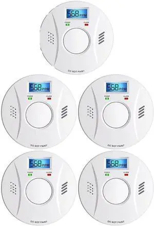 Smoke Detector and Carbon Monoxide Detector Co2 Detector Battery Powered with Test/Reset Button 5 Pack