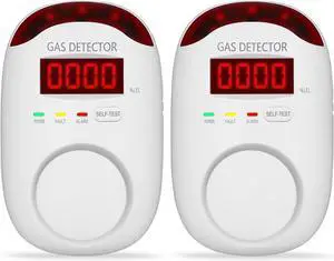 2 Packs Gas Detector & Alarm - Plug in Natural Detectors Propane for Home,RV Kitchen, Combustible Leak Monitor LNG, LPG, Methane. white