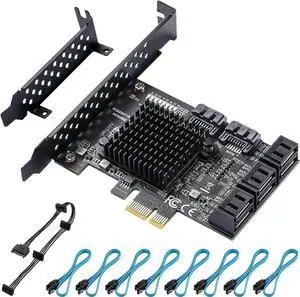 PCIe 8-Port SATA Controller Card (6 Gbps, Compatible with Windows, MAC, Linux) 8 Cables and Low Profile Bracket PCIE port -