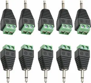 10Pcs 3.5mm 2 Pole Male to AV 2 Screw Terminal Audio Video Connector Adapter for CCTV Security Camera System