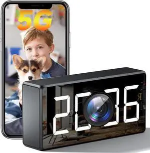 4K WiFi Camera Clock 5G Indoor Security Nanny Cam for Baby Monitor, Dog Camera with Motion Detection, Night Vision