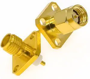 2PCS SMA Chassis Mount Connector SMA Male/Female Panel Mount Adapter SMA Chassis Solder 4 Hole Flange Coax Adapters SMA Solder Straight PCB Converter for Broadcast Audio Video Car Aerial GPS