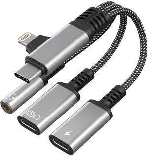 USBC Splitter 1 in 2 Out for USB C Headphone Charging and Data - Dual Lightning & Type C to 3.5mm Audio Jack + USB-C Headphone Power Data Adapter, Support Call and Data Transfer for iPhone 17-5