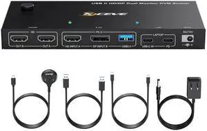 USB C HDMI DP KVM Switch for 1 Desktop+1 Laptop, Dual Monitor KVM Switch 4K@60Hz Support PD with USB C Cable, Wired Controller and Power Adapter