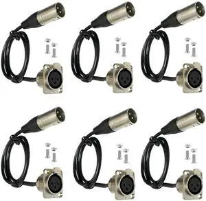 Premium XLR Pass Through Cable, No Solder, for Stage Box, Patch Panel, Floor Box - No Solder for Pro Audio Installations (Female to Male 6-Pack)