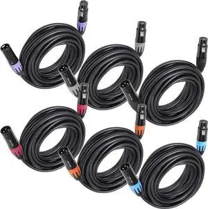 XLR Cables 25 Feet 3-Pin XLR Male to Female Microphone Cables 22 AWG (OFC) Balanced XLR Cables Set - 6 Pack