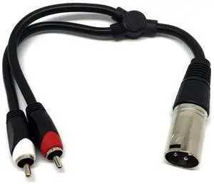 NEW XLR Male 3-Pin Plug to 2-RCA Male Plugs Stereo Microphone Y Adapter 1' Cable