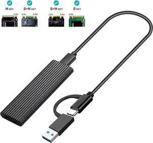 Jansicotek  NVME SSD Enclosure, M.2 NVME to USB C USB 3.1 Adapter with Case, Tool-Free USB3.1 Type-C Gen2 10Gbps to M.2 SSD Enclosure, Fit for 2230/2242/2260/2280 PCIe NVMe M-Key SSD -Black