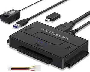 Xbnmex IDE SATA to USB 3.0 Cable USB to SATA or IDE Adapter Hard Drive Reader for 2.5"/3.5" Hard Drive Disk HDD with 12V 2A External AC Power Adapter