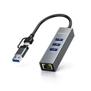 USB C to Ethernet Adapter, USB Ethernet Hub with Gigabit RJ45 Port and 3 USB 3.0 Data Ports, Plug and Play, 1Gbps Network Adapter Compatible with Laptop, PC, Windows 10/11, MacBook, iPad