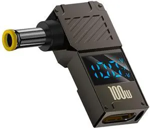 Vszerda Right Angle USB C Adapter with Digital Display, 140W USB C Male to Female Adapter, 8K 40Gbps Type C to Type Connector with Voltage/Current/Power LED Display for MacBook, Phone,1-Pack