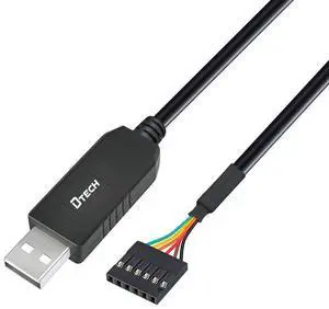 DTECH 6ft USB to TTL Serial Cable 3.3V 6 Pin UART Adapter Genuine FTDI FT232RL Chip Debug Cord Compatible with Windows 11 10 8 7 Linux MAC OS 6Pin 3v3 Level Signal 2.54mm Dupont Female Header