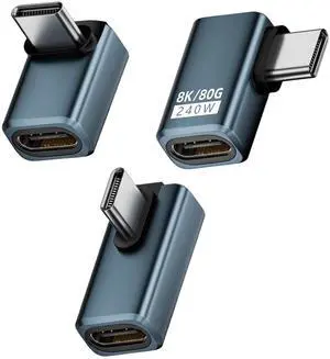 Vszerda 90 Degree USB C Adapter240W Charging/ 80Gbps Data/ 8K@60Hz Video Right Angle USB C Adapter Thunderbolt 5 Type C Extender Compatible for Laptop, MacBook,iPhone 16, Steam Deck, 3-Pack