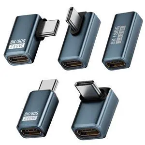 Vszerda 80Gbps USB C 90 Degree Adapter240W Charging/ 8K@60Hz Video 90 Degree USB C Adapter Right Angle Type C Extender Compatible for Thunderbolt 5/4, iPhone 16, Steam Deck,5-Pack