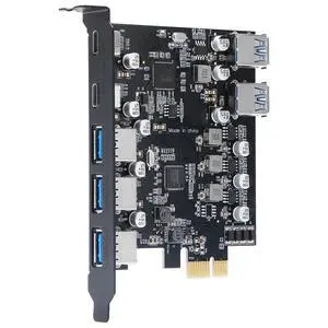 Vszerda PCIe to USB 3.0 5X USB-A and 2X USB-C Ports Expansion Card,PCI Express Internal USB 3 Hub Converter for Desktop PCS Riser Card
