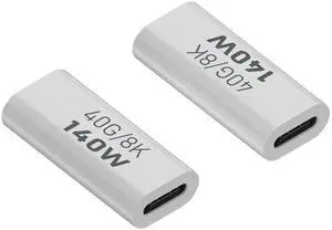 JAENFONG 140W USB4.0 C Female to Female Data Adapter Coupler 40Gbps USB4.0 Type C Jack to Jack Charging Connector Extender PD140W/8K@60Hz, Al Hull, for Thunderbolt 3 iPhone 15 Steam Deck, 2Pcs