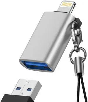 OTG Adapter, USB 3.0 Female to Lightning Male Adapter OTG Dongle for iPhone 14 13 12 11 Xr X XS 8, iPad Air Pro Mini, Camera, Card Reader, Keyboard, Mouse, Hubs, USB Disk Connection - Silver