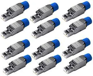 Cat8 Tool-Free RJ45 Connectors 12-Pack - Shielded Industrial Ethernet Plugs for 40Gbps/2000MHz, 22-26 AWG Cat8/Cat7/Cat6a Cables, PoE++ Ready with Full Metal Shielding (Cat8 12-Pack)