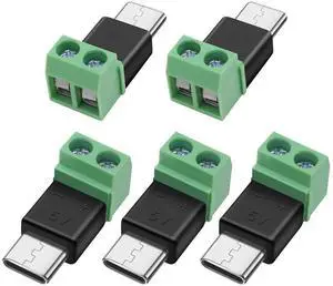 Aomoproing USB Type C Solderless Connector Screw Terminal Adapter USB C Male to 2 Pin Terminal Block 5V 1.5A for Power Charging Repair DIY 5Pcs