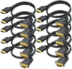 HDMI to VGA Adapter 10-Pack, Computer HDMI to VGA Monitor (Male to Female) Adapter Converter for Computer, Desktop, Laptop, PC, Monitor, Projector, HDTV, Chromebook, Raspberry Pi, Roku