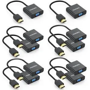 HDMI to VGA Adapter 5 Pack, Gold-Plated HDMI to VGA Converter (Male to Female), Compatible for Computer, Laptop, PC, Monitor, Projector, HDTV, Chromebook, Raspberry Pi, Roku, Xbox and More