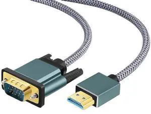 HDMI to VGA 75Ft Cable with IC, Gold-Plated HDMI to VGA Compatible for Computer, Desktop, Laptop, PC, Monitor, Projector,HDTV, Raspberry Pi, Roku, Xbox and More, Grey