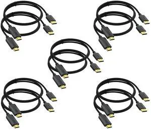 4K DisplayPort to HDMI Cable 10-Pack, 6 Feet Braided 4K Display Port DP to HDMI Adapter Cord Male to Male Supports Video and Audio (4k, 2160P, 1440P, 1080P)-NOT Bidirectional