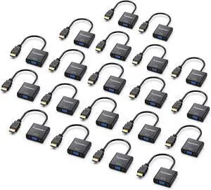 HDMI to VGA Adapter 20 Pack, Gold-Plated HDMI to VGA Converter (Male to Female), Compatible for Computer, Laptop, PC, Monitor, Projector, HDTV, Chromebook, Raspberry Pi, Roku, Xbox and More