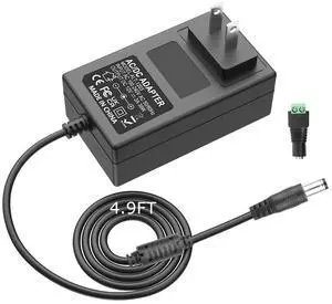 12V 3A Power Supply Adapter 36W Input AC 100V-240V to DC 12Volt 3amp Power Cord with 5.5x2.5mm Output Jack for LED Strip Module Light 3D Printer CCTV Security Camera Speaker with DC Tips 4.9FT