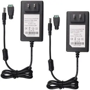 12V 3A Power Supply Adapter AC/DC Converter 110V 240V to 12V Transformer 36W 5.5x2.1mm DC Female Barrel Connector for LED Strip Lights CCTV Camera DVR NVR Audio/Video Wall Plug 2Pack