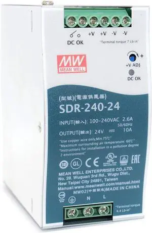 WDR-240-24 Power Supply Din Rail Switching 240W 24 VDC, 10 Amp