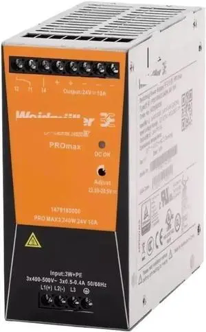 NURII Switching Power Supply, TRIO-PS/3AC/24DC/20, 480W | 24V | 3x400-500VAC | 20A 2866394