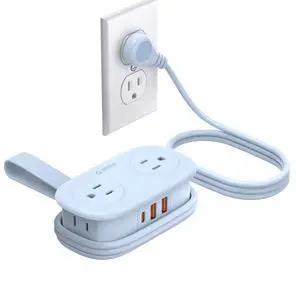 Travel Power Strip, NTONPOWER Portable Charging Station 3 USB Without Surge Protector Short Extension Cord 15 inches Compact for Home, Office, Cruise Ships, Business Trip, Hotels, Black