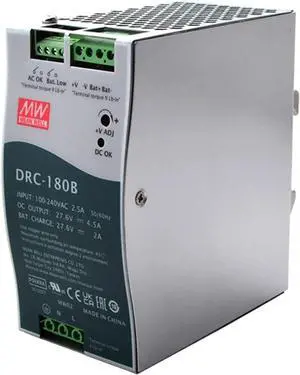 DRC-100A 96.6W DIN Rail AC-DC Power Supply - 13.8V 4.5A/2.5A Dual Output UPS & Battery Charger, UL TUV Certified for Industrial Security & Monitoring Systems