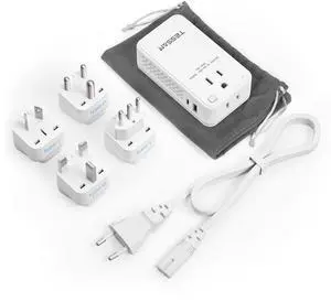 BESTEK Universal Travel Adapter 100-220V to 110V Voltage Converter 250W with 6A 4-Port USB Charging 3 AC Sockets and EU/UK/AU/US/India Worldwide Plug Adapter (White)