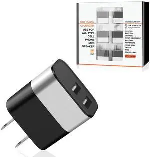Dual Port USB Wall Charger/ Power Adapter/ Charging Block In Silver (12pcs)
