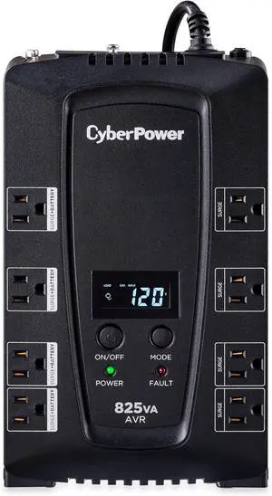 CyberPower CP825AVRLCD Intelligent LCD UPS Battery Backup and Surge Protector, 825VA/450W, 8 Outlets, AVR, Compact, UL Certified