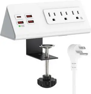 Nightstand Power Strip with USB C, Haiaoyyds Desk Edge Mount Power Hub with 3 Outlets, 4 Fast Charging USB Ports, and 6.56FT Flat Plug Extension Cord for Desk Home Office Accessories, White