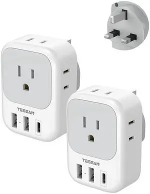 US to UK Plug Adapter, Type G Travel Adaptor with 4 Electrical Outlets 3 USB Ports (2 USB C), Ireland Power Adapter for USA to England London Scotland Dubai Singapore Qatar Kenya British