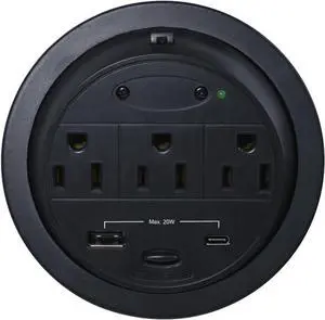 Kable Kontrol Recessed Power Grommet Desk Outlet, 3 AC Outlets,1 USB-A, 1 USB-C, 8 Ft Power Cord, Flush Mount Fast Charging Station, for Office, Hotels Black