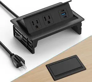 Recessed Power Strip Countertop Power Grommet Desk Mountable Power Strip Behind Drawer Outlets for Cabinet Sofa Shelf UL/ETL Certificated Black