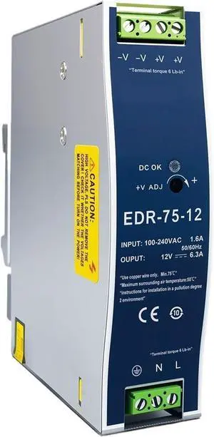 Mean Well EDR-75-12 75.6W Single Output Industrial DIN Rail EDR-75 12V 6.3A