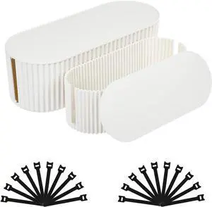FABROK 2 Pack Cable Management Box, Cord Organizer Box with 20 Cable Ties, Power Strip Storage to Hide Charger Adapter Power Cord Charging Station White (Small+Large)