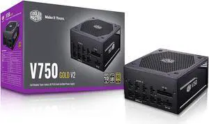 Cooler Master V750 Gold V2 Full Modular,750W, 80+ Gold Efficiency, Semi-fanless Operation, 16AWG PCIe high-Efficiency Cables, 10 Year Warranty