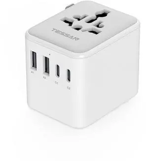 Universal Travel Adapter, International Power Adapter with 2 USB C 2 USB A Ports, Travel Plug Adaptor Worldwide for US to Europe UK Italy Ireland Australia France Germany(Type C G A I)