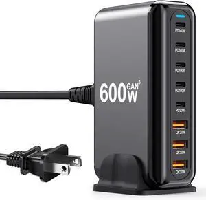 400W USB C Charger Block 8 Port Fast Charging Station with iWatch Fast Wireless Charger Upgraded 9 in 1 GaN III PD 100W Laptop Charger Adapter Compatible with MacBook Pro/Air, iPhone16/15, Galaxy