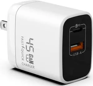 Fast 45W Dual USB-C Plus USB-A Charger - GaN Power Delivery - Fast Compact Power Adapter for Laptops Smart Phones Tablets and Thousands of Other Devices (White 45W)