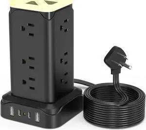 PD 20W Power Strip with 10FT Extension Cord, Multiple Outlets Surge Protector Power Strip with USB Ports Tower (10FT-PD20W, Black)